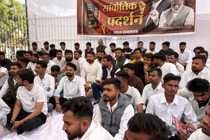 NSUI राजस्थान की ओर से प्रदेश अध्यक्ष विनोद जाखड़ के नेतृत्व में आज प्रधानमंत्री Narendra Modi द्वारा अमेरिकी राष्ट्रपति Donald Trump के समक्ष कथित रूप से आत्मसमर्पण की नीति तथा अमेरिका के साथ की गई 0...
