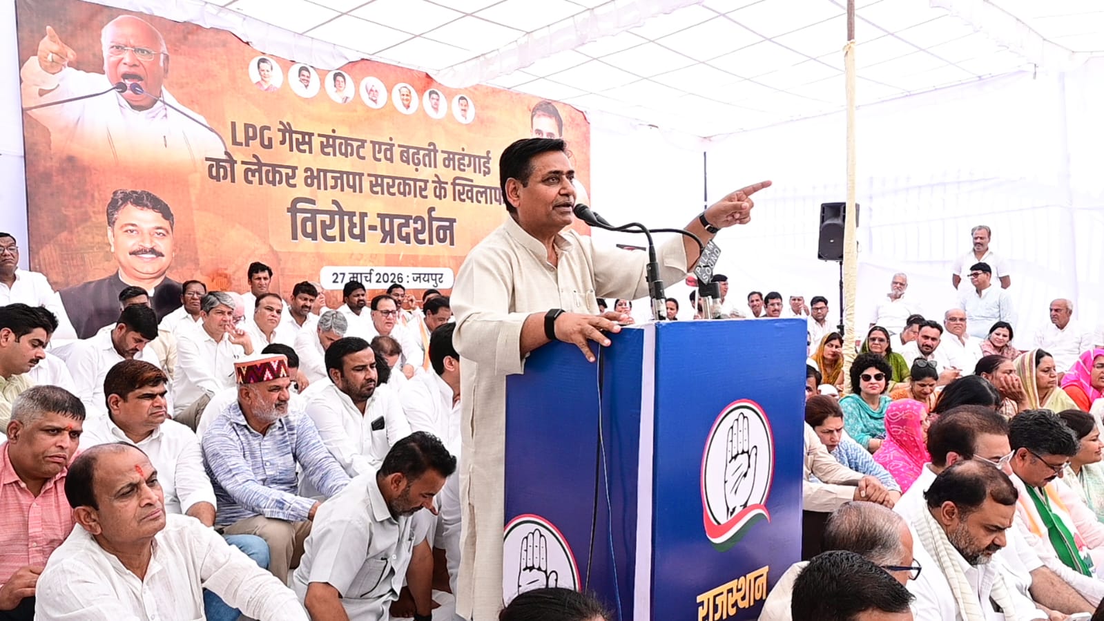 राजस्थान विधानसभा में नेता प्रतिपक्ष टीकाराम जूली ने धरने को सम्बोधित करते हुए कहा कि कहा कि देश में एलपीजी का संकट है लेकिन सरकार इसे छुपाना चाहती है क्योंकि केन्द्र सरकार की नीतियाँ सही नहीं थी, पूरे प्रदेश में एलपीजी प्राप्त करने के लिए लोग गैस एजेन्सियों के बाहर लाईन लगाकर खड़े है लेकिन सरकार को यह नजर नहीं आता है। सरकार बयान दे रही है कि किसी प्रकार का संकट नहीं है उन्हें सुझाव है कि अखबार में आमजन किस प्रकार परेशान हो रहा है उसकी खबरें मुख्यमंत्री पढ़े। प्रदेश में कांग्रेस सरकार ने रिफाईनरी का काम शुरू करवाया था किन्तु भाजपा की सरकार ने इसको पूरा नहीं किया जबकि कांग्रेस शासन में 95 प्रतिशत कार्य पूर्ण हो चुका था और अब ढ़ाई वर्ष का समय व्यतीत हो जाने पर भी यह रिफाईनरी शुरू नहीं हुई। मुख्यमंत्री ने विधानसभा में बजट में घोषणा की थी कि अगस्त, 2025 में रिफाईनरी का उद्घाटन प्रधानमंत्री करेंगे और अब मार्च, 2026 निकलने को है लेकिन रिफाईनरी का उद्घाटन नहीं हुआ। देश में 2014 से पहले कच्चे तेल का जो उत्पादन होता था उसका उत्पादन भी घट गया है जितना स्टॉक पहले रखा जाता था 2014 के बाद वह भी घट गया है, गैस सिलेण्डर के दाम 60 रूपये बढ़ा दिए है इससे आम नागरिक विशेषकर गरीबों पर महँगाई का भार भाजपा सरकार ने थोप दिया है। कांग्रेस पार्टी आमजनता के दु:ख, तकलीफो में साथ खड़ी है और भाजपा की गूंगी-बहरी सरकार को जगाने का काम करती रहेगी।