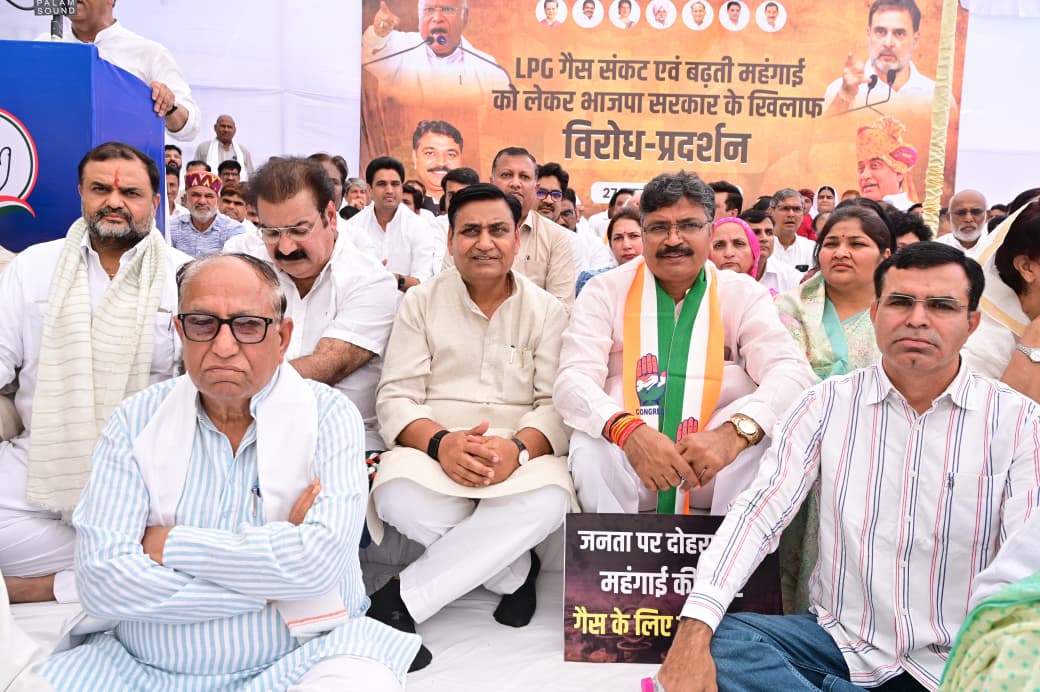 जयपुर, 27 मार्च। केन्द्र सरकार की गलत नीतियों के कारण देश में व्याप्त एलपीजी की कमी के कारण आमजन को हो रही परेशानी के विरोध में राजस्थान प्रदेश कांग्रेस कमेटी के अध्यक्ष गोविन्द सिंह डोटासरा के नेतृत्व में कांग्रेस द्वारा जयपुर के शहीद स्मारक पर विशाल धरना एवं प्रदर्शन आयोजित किया गया। धरना-प्रदर्शन में नेता प्रतिपक्ष टीकाराम जूली, एआईसीसी सचिव व सह प्रभारी रित्विक मकवाना, एआईसीसी के मध्यप्रदेश प्रभारी हरीश चौधरी, सचिव धीरज गुर्जर, कांग्रेस विधायक, जिलाध्यक्ष, अग्रिम संगठनों तथा विभाग एवं प्रकोष्ठों के अध्यक्ष एवं संयोजक, प्रदेश पदाधिकारी, पूर्व विधायक सहित हजारों की संख्या में कांग्रेस कार्यकर्ता शामिल हुए।