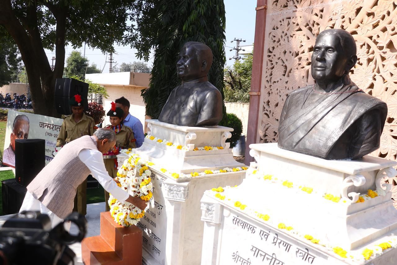 भीलवाड़ा। राजस्थान के पूर्व मुख्यमंत्री एवं असम के पूर्व राज्यपाल स्वर्गीय श्री शिवचरण जी माथुर साहब की 100वीं जयंती पर शनिवार को महिला आश्रम कॉलेज परिसर स्थित मूर्ति स्थल पर पुष्पांजलि कार्यक्रम आयोजित किया गया। कार्यक्रम में मुख्य अतिथि मध्यप्रदेश के पूर्व मुख्यमंत्री दिग्विजय सिंह, राजस्थान सरकार के पूर्व मंत्री एवं भीलवाड़ा देहात कांग्रेस के जिलाध्यक्ष श्री रामलाल जाट, हगामी लाल मेवाड़ा, महिला आश्रम संस्था के अध्यक्ष श्री विष्णु माथुर, संस्था की सचिव वंदना माथुर, संस्था की डायरेक्टर विभा माथुर, नगर विकास न्यास के पूर्व अध्यक्ष कैलाश व्यास एवं अक्षय त्रिपाठी ने पुष्पांजलि अर्पित कर उन्हें नमन किया।